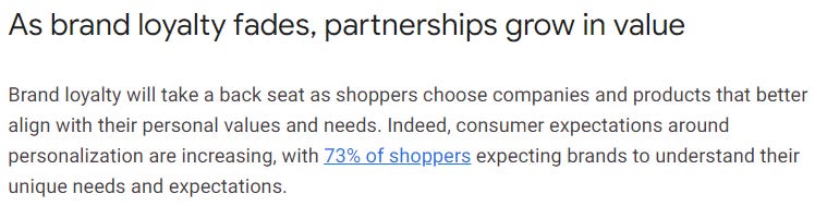 A recent Think with Google note on the future of retail has some fascinating insights into the world of e-commerce. The next gen of marketplaces will be able to solve for the problem of customers ‘shopping around’ by helping sellers streamline their business operations (sourcing, production, financing etc.) and buyers access more personalized, curated deals (real-time price discovery, truly personalized recommendations - with the explosion of individual metadata this should be more possible today, seamless omnichannel experiences, loyalty & subscription programs, other value-based add-ons) to improve their conversion rates.